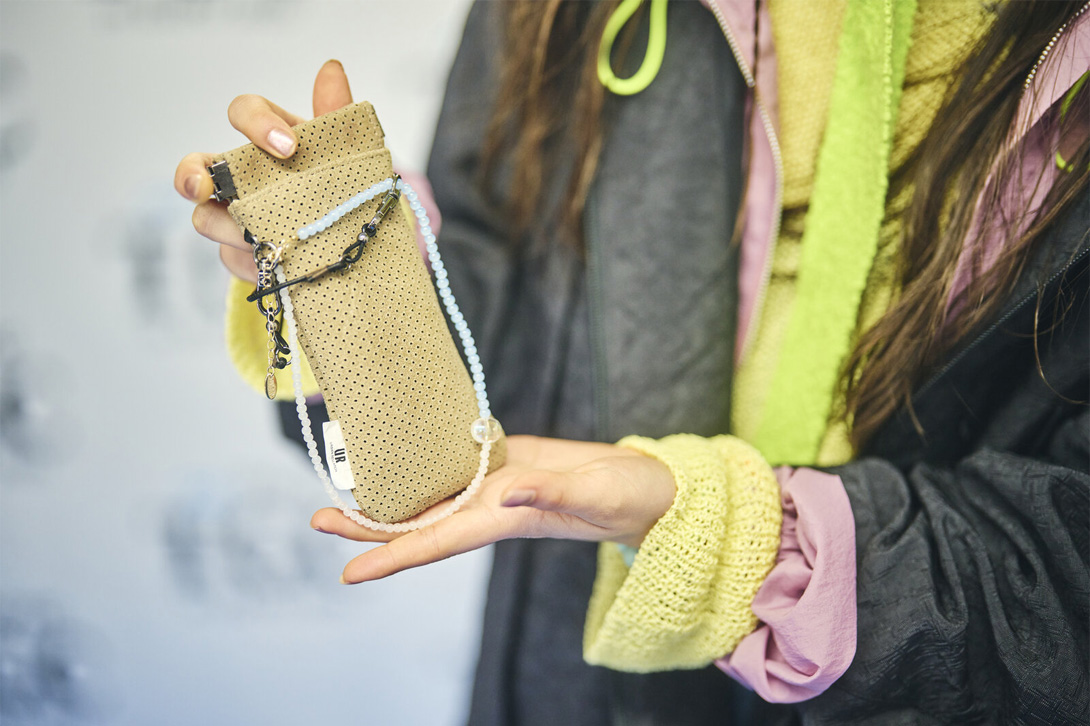 我在展会上看到的笔袋和名片夹,每件产品上面都有划痕或记号笔的痕迹。这反而成了一种韵味和个性,让我感觉非常棒。